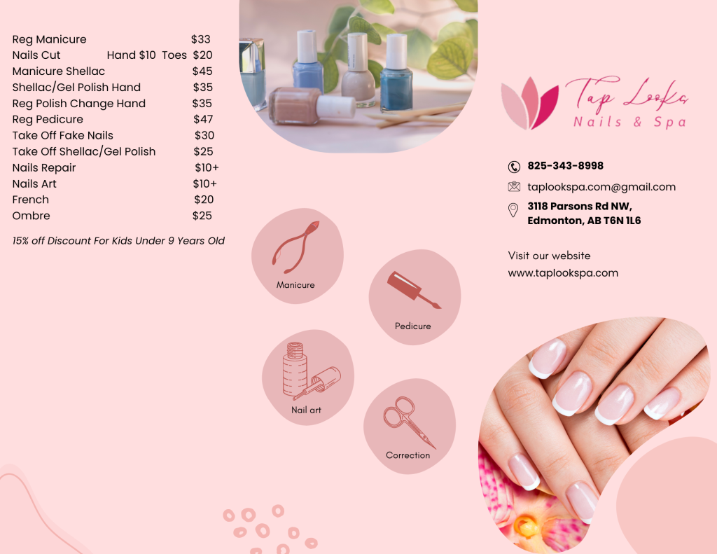 Below is TapLook Mobile Manicures Winnipeg Services price list: